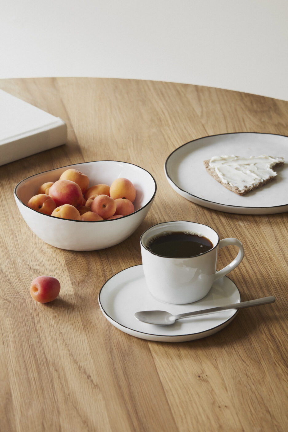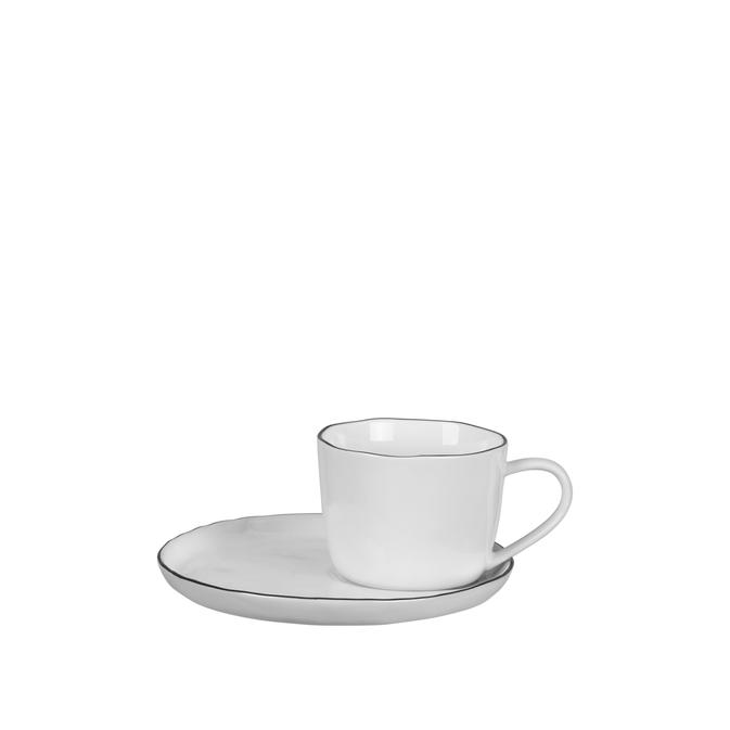 ספל פורצלן מתוך סידרת הSALT של החברה הדנית BROSTE COPENHAGEN כל יחידה עשויה בתבנית עם גימור ידני, כך שלכל ספל מראה יחודי . פרטים טכניים : מידות: Ø8.2XH6.5 ס"מ תכולה: 150 ML צבע: לבן עם פס שחור עדין בשפה חומר: פורצלן מתאים לשימוש במדיח
