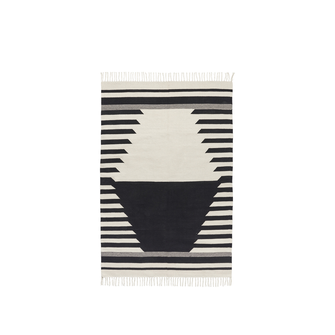 שטיח לפנים בית עשוי כותנה בדוגמא גאומטרית שחור ולבן מתאים למגוון חללים פרטים טכניים : מידות: W140XL200CM צבע: שחור ולבן אבן חומר: כותנה